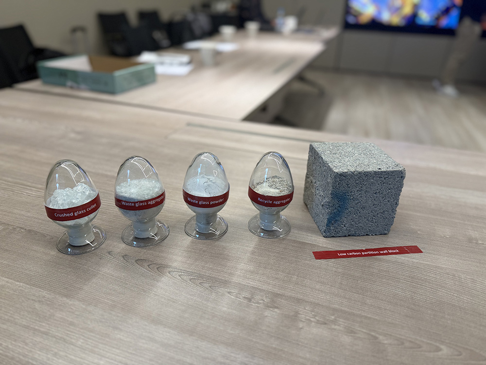 This innovation exemplifies a true closed-loop circular economy within the Tomorrow’s CENTRAL project by converting demolished tempered and laminated glass into partition blocks and low-carbon cement alternatives, which is targeted to be reused within the project itself, maximising resource efficiency whilst minimising environmental impact.